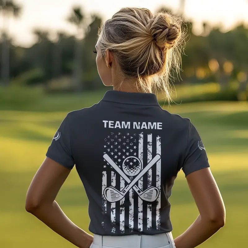 Black and White American Flag Women Golf polo shirts custom patriotic golf apparel team golf jerseys NQS9605
