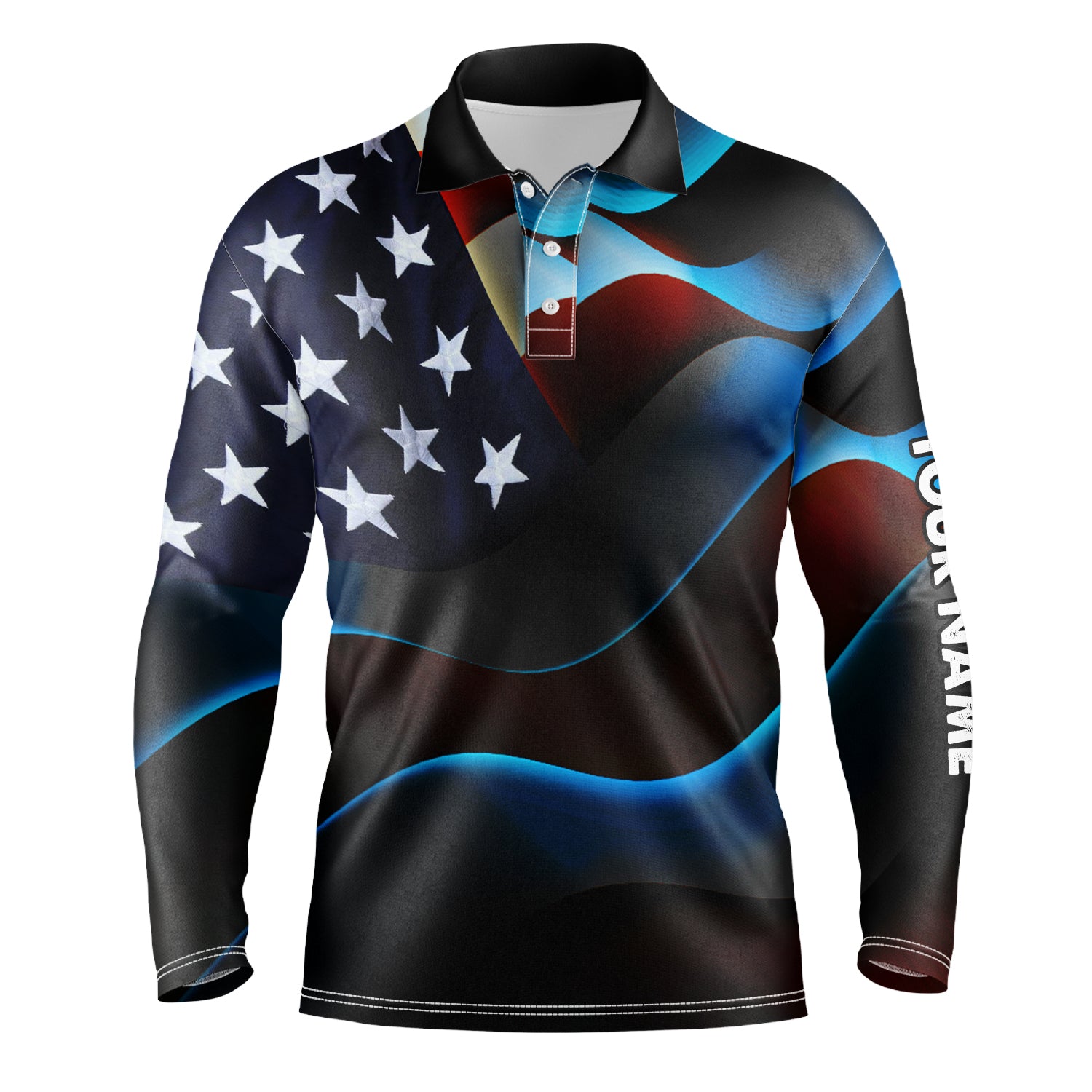 Mens golf polo shirts custom name black American flag patriotic golf shirts for mens golfing gifts NQS5745