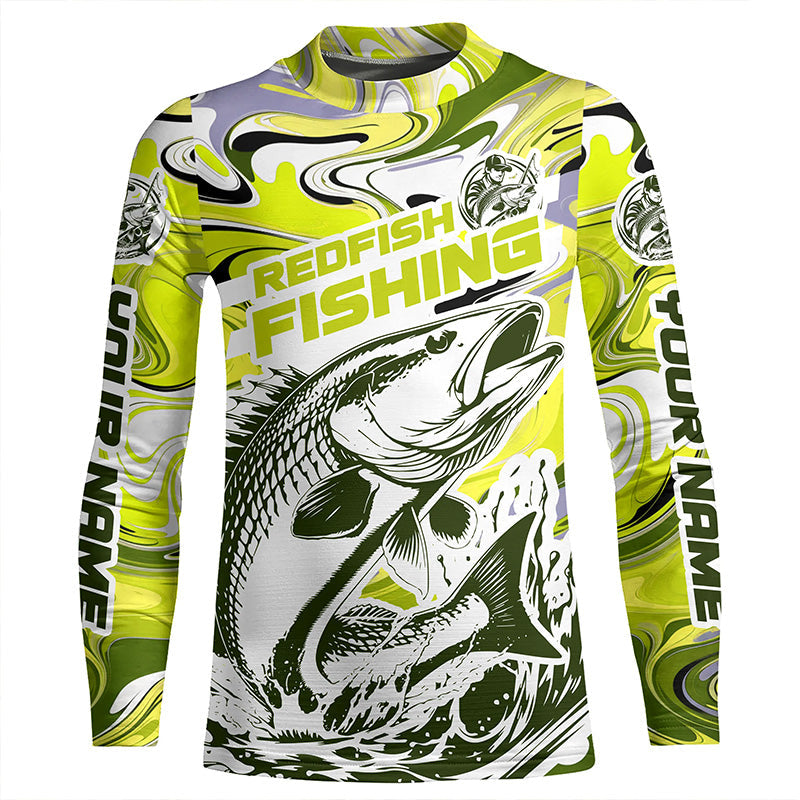 Redfish Fishing Custom Performance Long Sleeve Uv Shirts, Saltwater Camo Fishing Shirt | Yellow IPHW6161