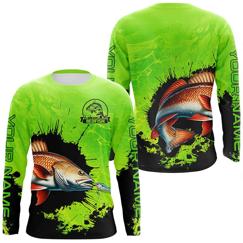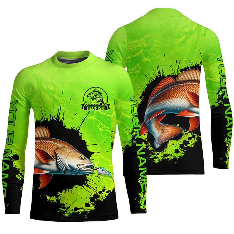 Personalized Redfish fishing Performance long sleeve Fishing Shirts, Red drum fishing jerseys | Green NQS6940