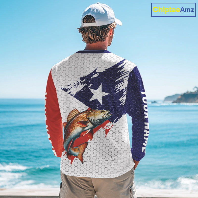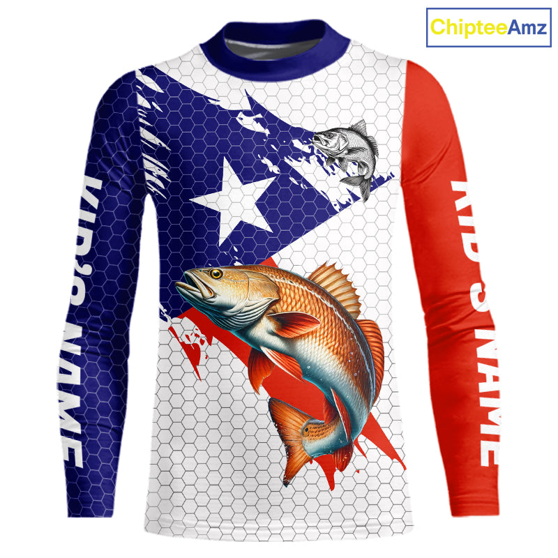 Red, White and Blue Texas Flag Redfish Fishing custom Redfish long sleeves performance fishing shirts NQS10001