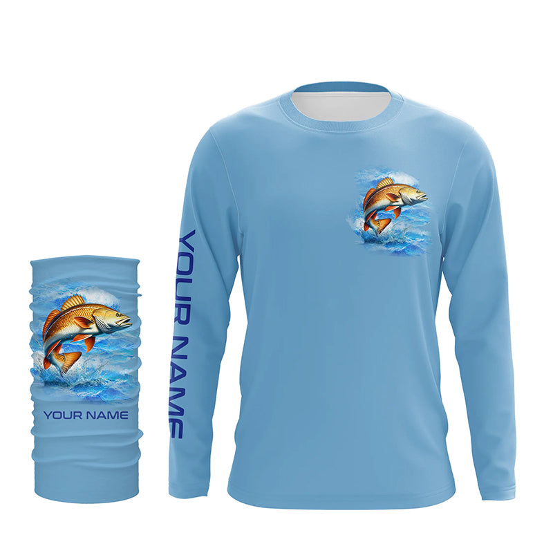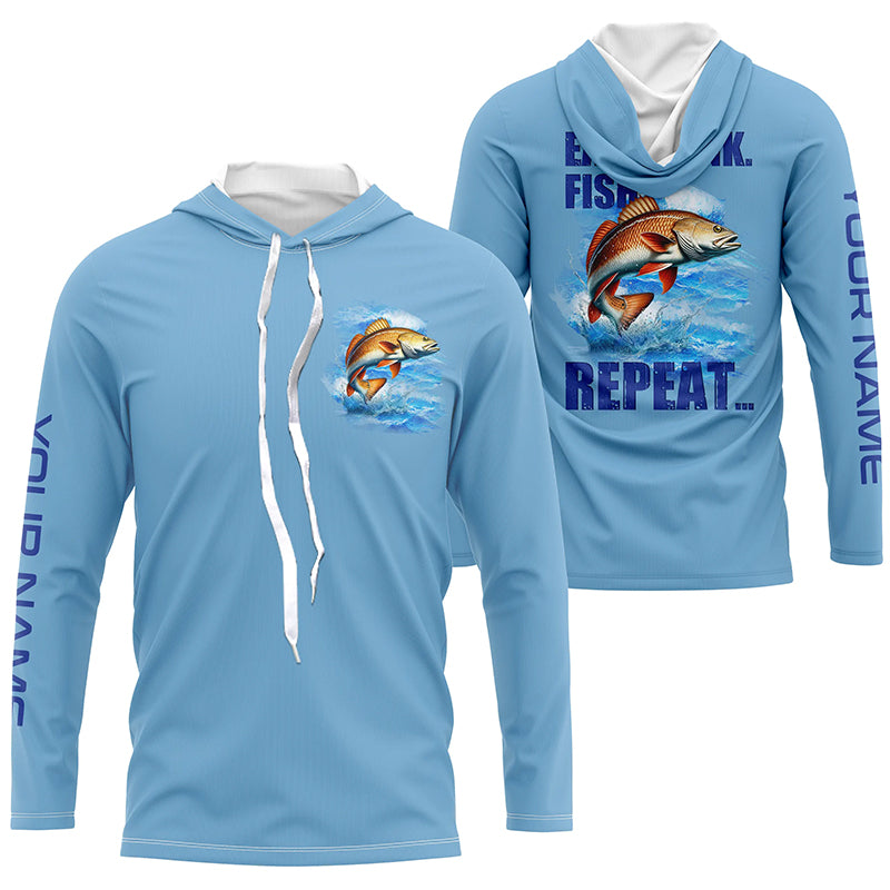 Redfish puppy drum Fishing Custom Long Sleeve Performance Fishing shirts Eat Drink Fish Repeat | Blue NQS6612