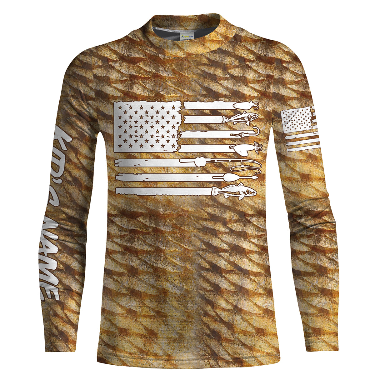 Redfish puppy drum Fishing American flag patriotic Customize Name long sleeves fishing shirts UPF 30+ NQS2220