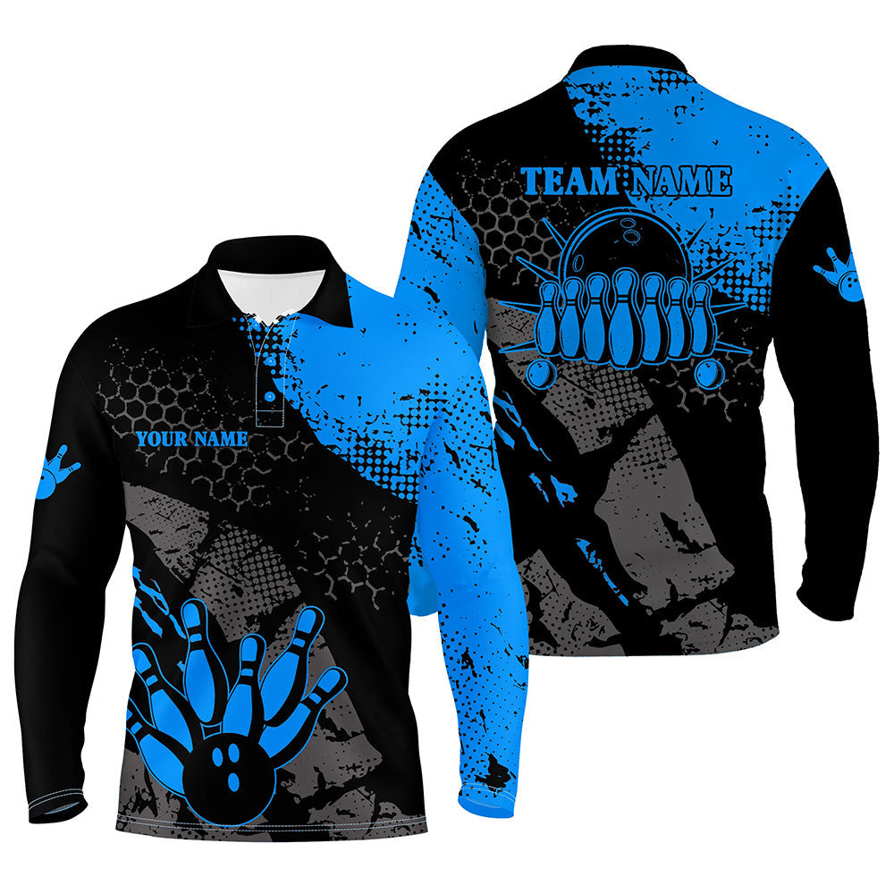 Black and blue Mens polo bowling shirts Custom retro bowling ball pins bowling team league jerseys NQS6314