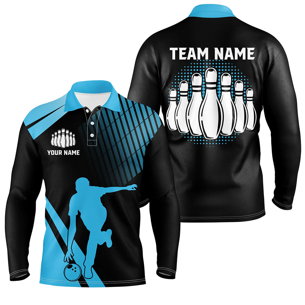 Black and Blue retro Bowling Polo Shirt for Men Custom Bowling ball and pins Team League Jersey NQS7532