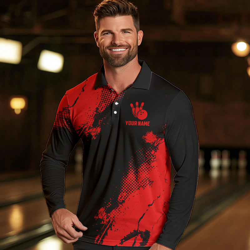 Black and Red Retro Mens Bowling Polo, Quarter Zip shirts Custom team bowling jerseys mens outfit NQS9394