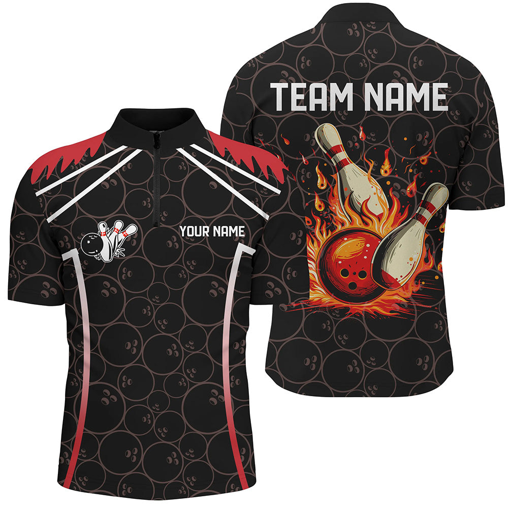 Black camo Bowling League Jerseys For Men Custom Retro Flame Bowling Shirts For Team Bowlers | Red NQS7557
