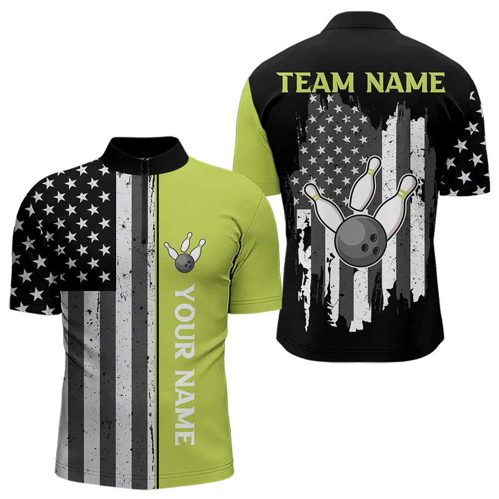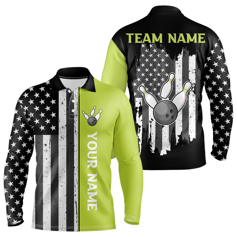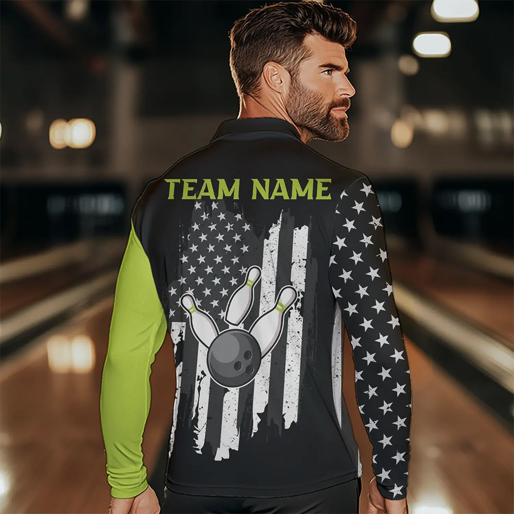 Black White Retro American Flag Bowling Shirts For Men Custom Patriotic Bowling Team Jersey | Green NQS9638