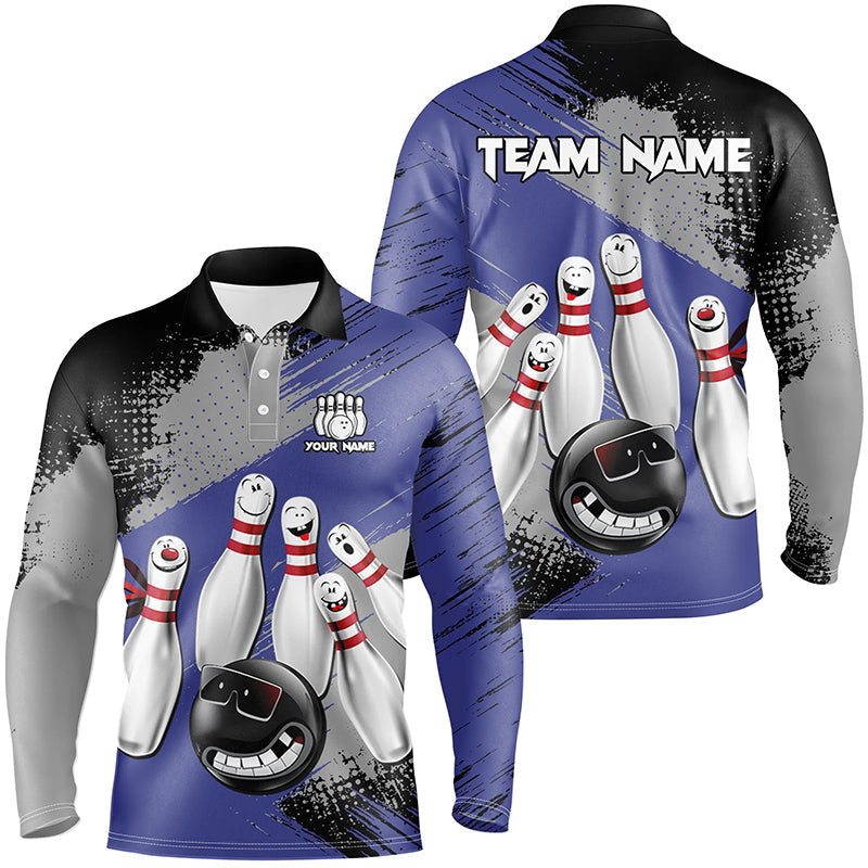 Blue Retro Bowling Shirt For Men Custom Funny Bowling Jersey Team League Bowling Polo, 1/4 Zip Shirt NQS8398