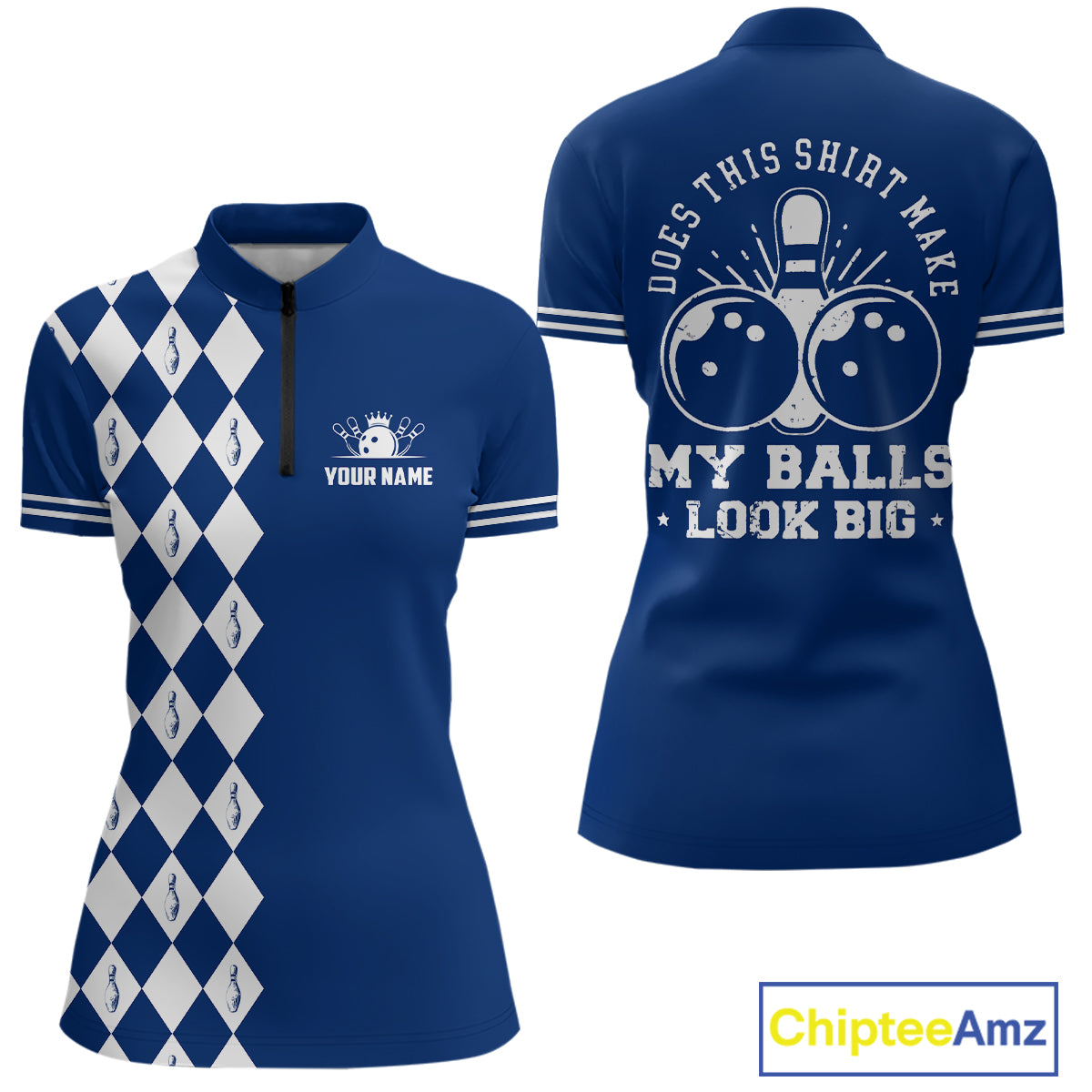 Funny blue and white argyle retro Women Bowling Shirts Custom Does this shirt make my balls look big NQS10610