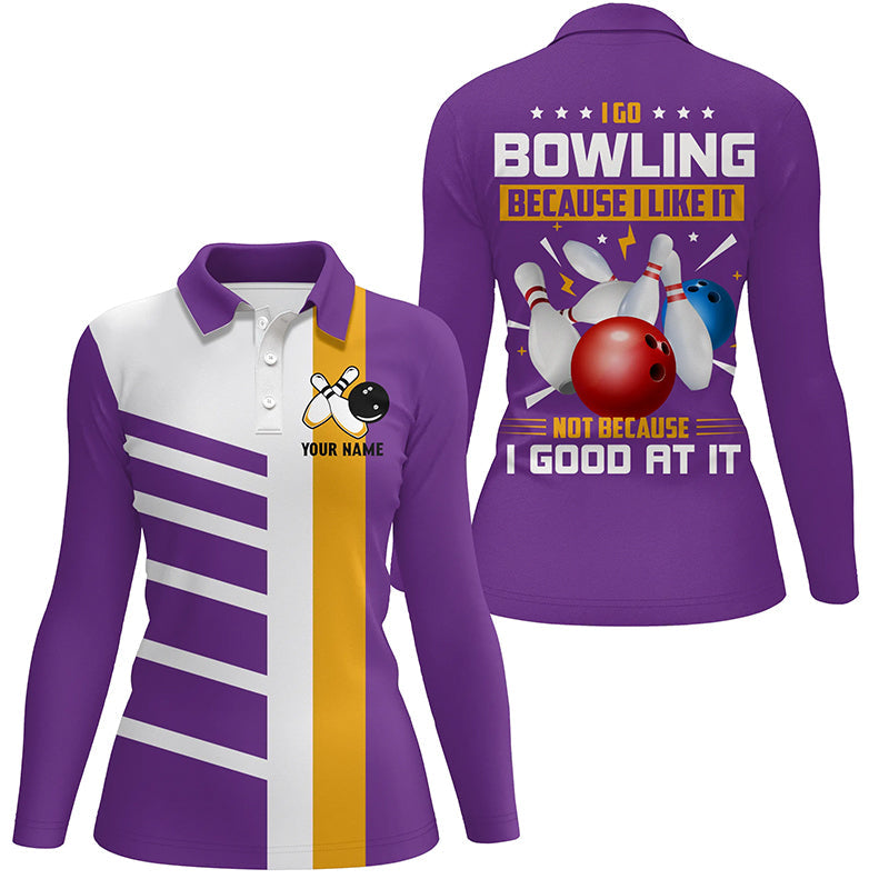 Funny Retro Bowling Polo, Quarter Zip Shirts For Women Custom I go bowling because I like it | Purple NQS8640