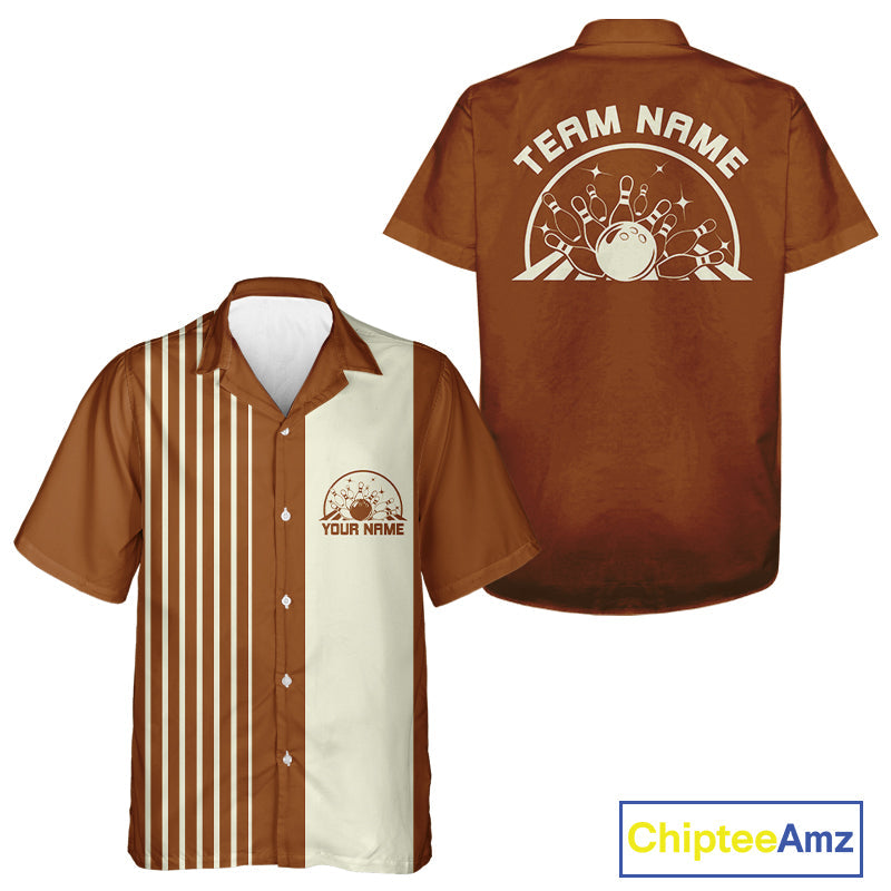 Custom Classic Striped Vintage Bowling Shirt, Retro Bowling Button Up Team Shirt IPHW10074