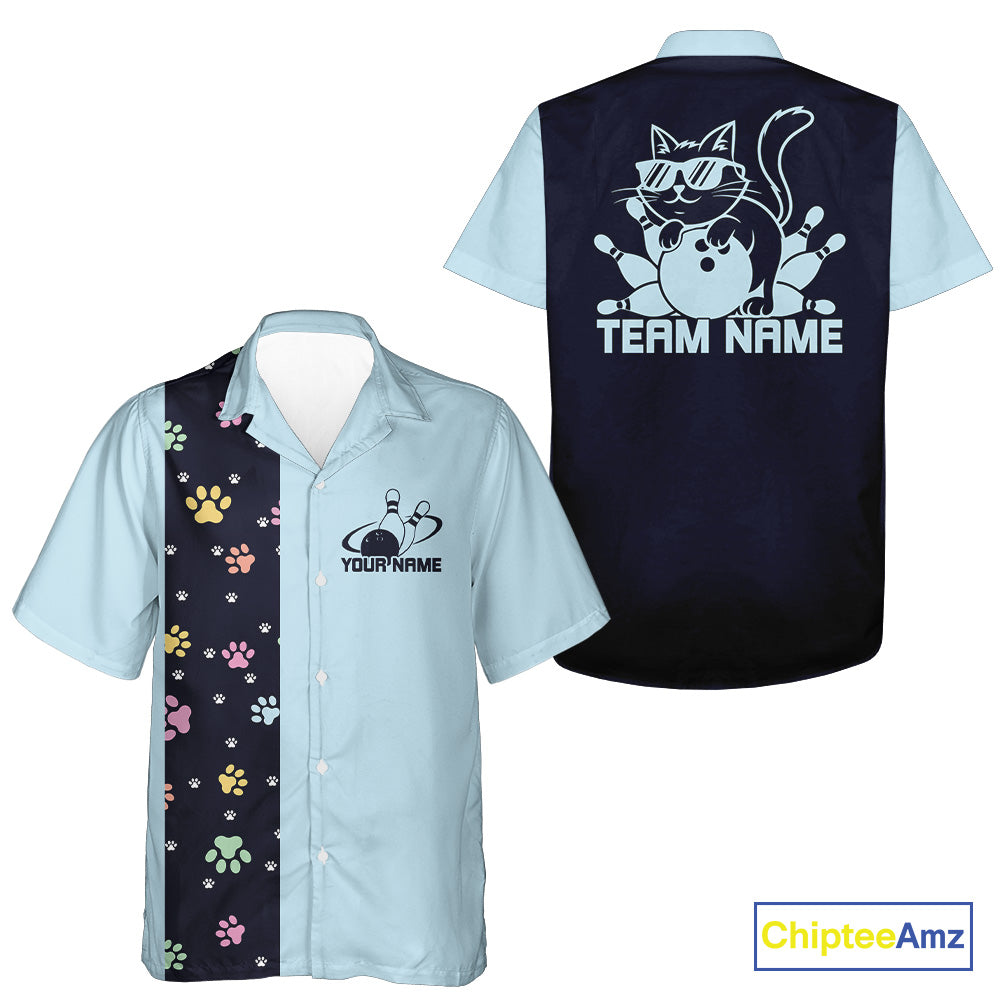 Custom Retro 50S Cat Bowling Button Up Shirt Men And Women, Vintage Cat Bowling Shirt IPHW10098