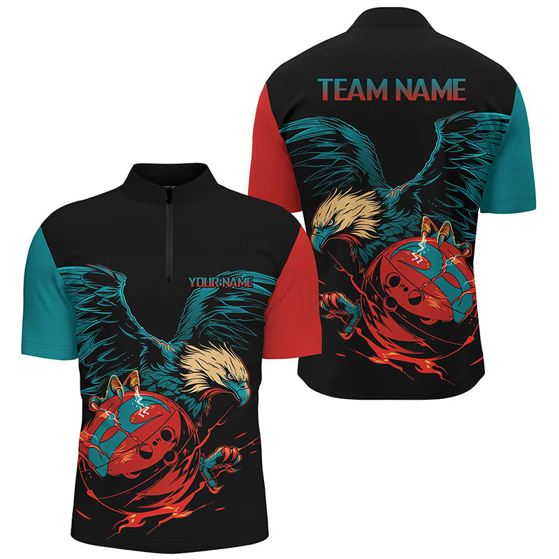 Personalized Retro Eagle Bowling Polo, 1/4 Zip Shirts for Men, Custom Team's Name Cool Bowler Jerseys NQS7892