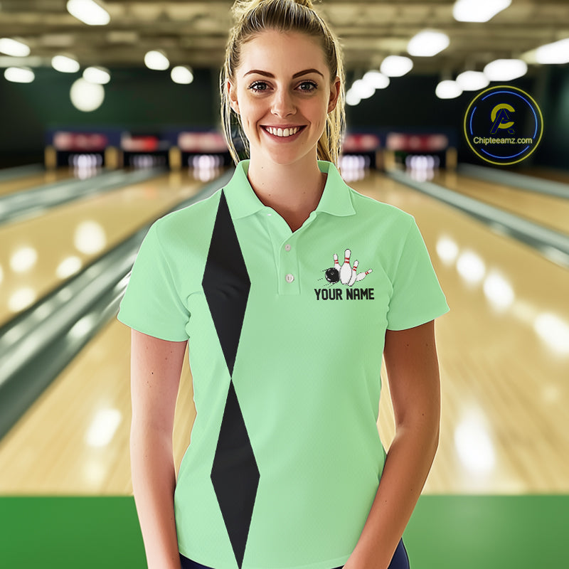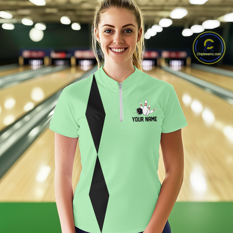 Personalized Retro Women Bowling Polo, 1/4 Zip Shirts custom vintage bowling team jersey | Mint Green NQS11018