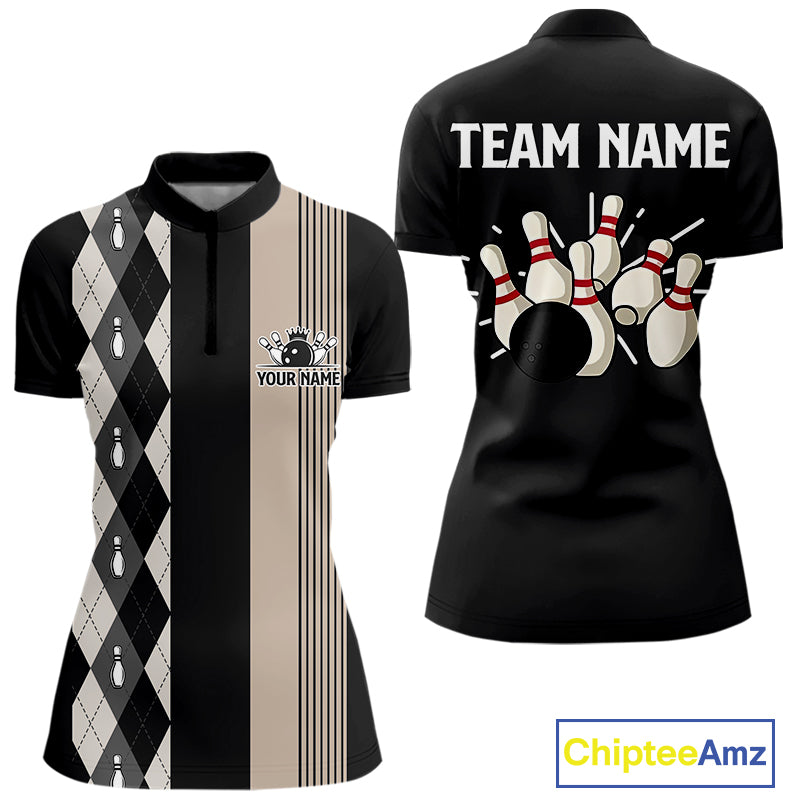 Retro Black argyle pattern Bowling shirts For Women custom bowling team jerseys Bowler Outfits NQS10276