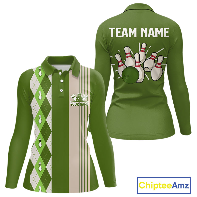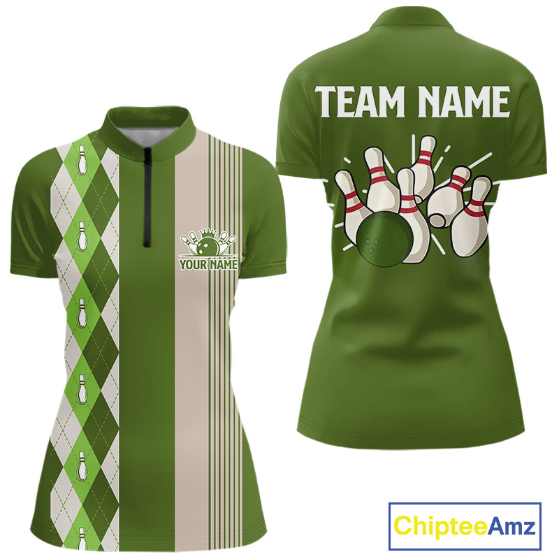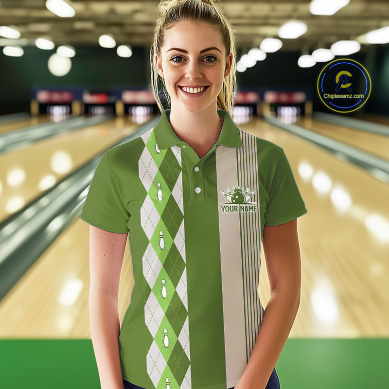 Retro Green argyle pattern Bowling shirts For Women custom bowling team jerseys Bowler Outfits NQS10152