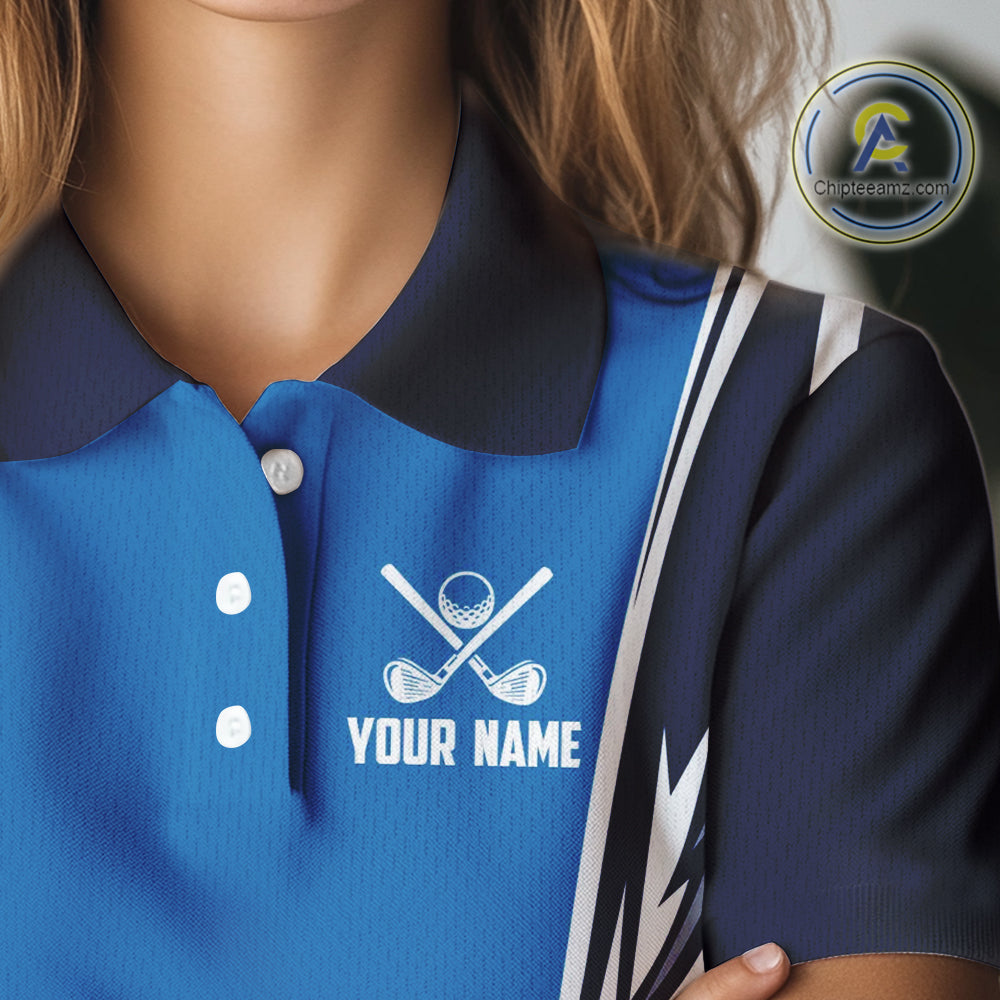 Blue and white Women golf polo shirts custom golf attire for ladies, gifts for golf lovers NQS10085