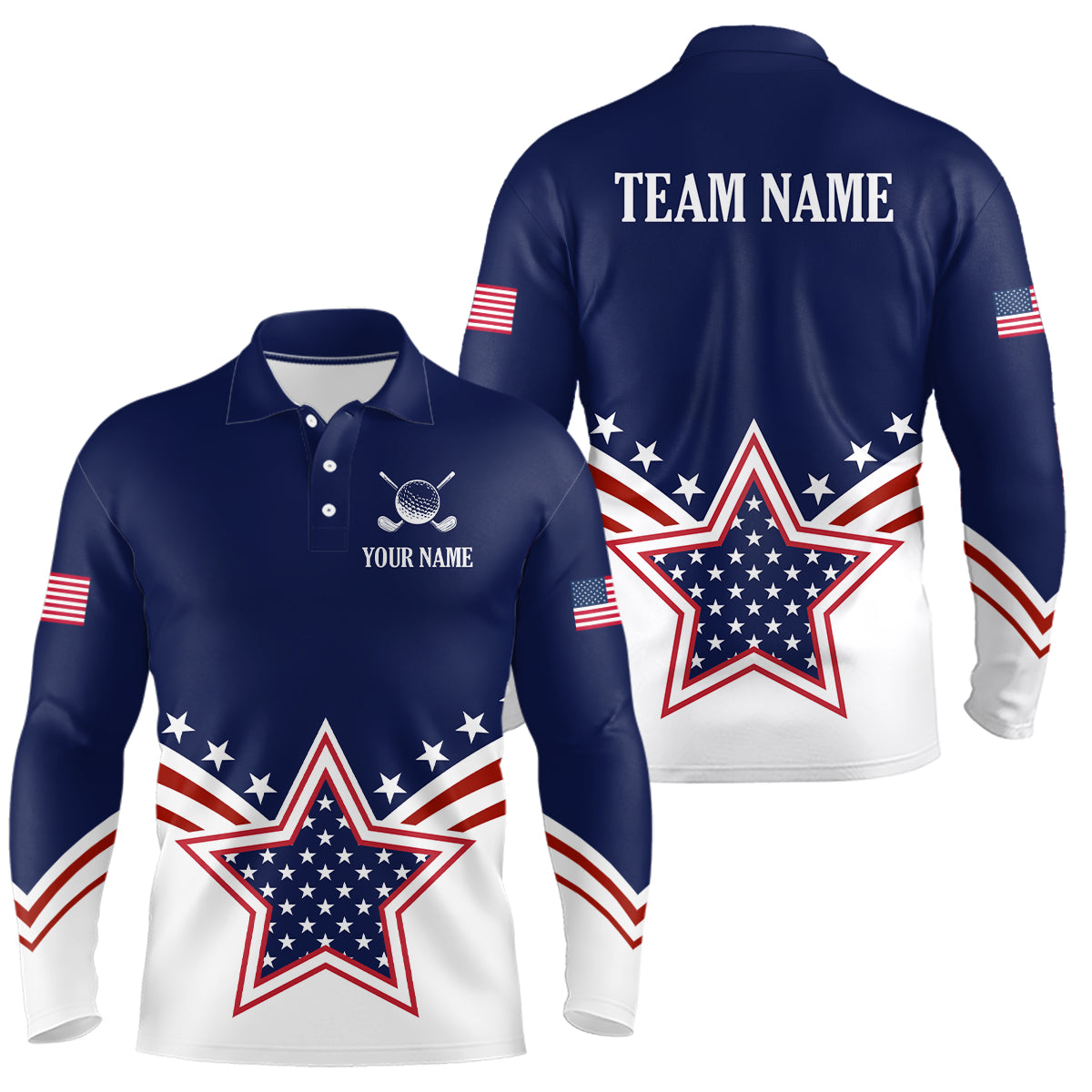 Custom Patriotic Golf Polo Shirt White and Blue Golf Shirts for Men Women Team MMG35