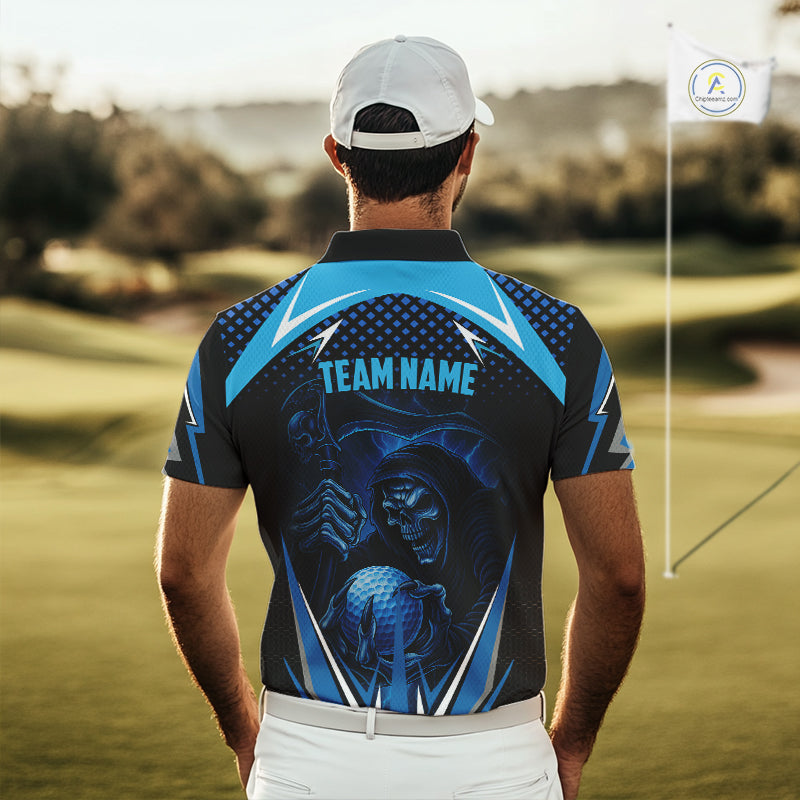 Mens golf polo shirts custom Blue Lightning reaper skull Golf team golf jersey, mens golf attire NQS10206