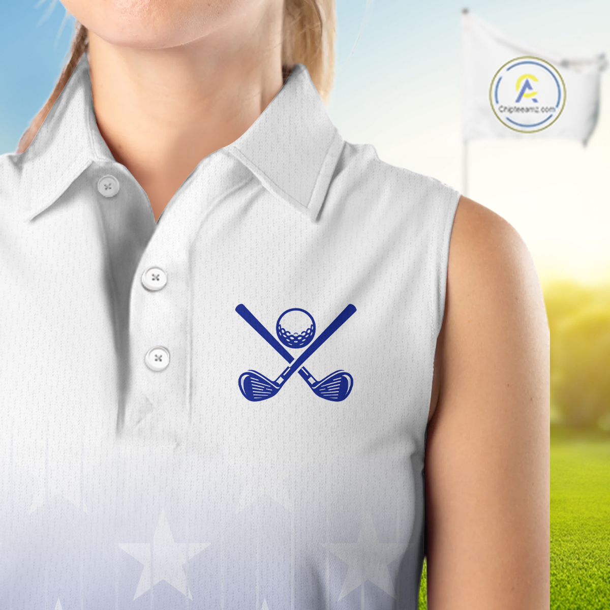 Blue stars pattern white ladies sleeveless golf polos shirts, gifts for the golfer NQS9965