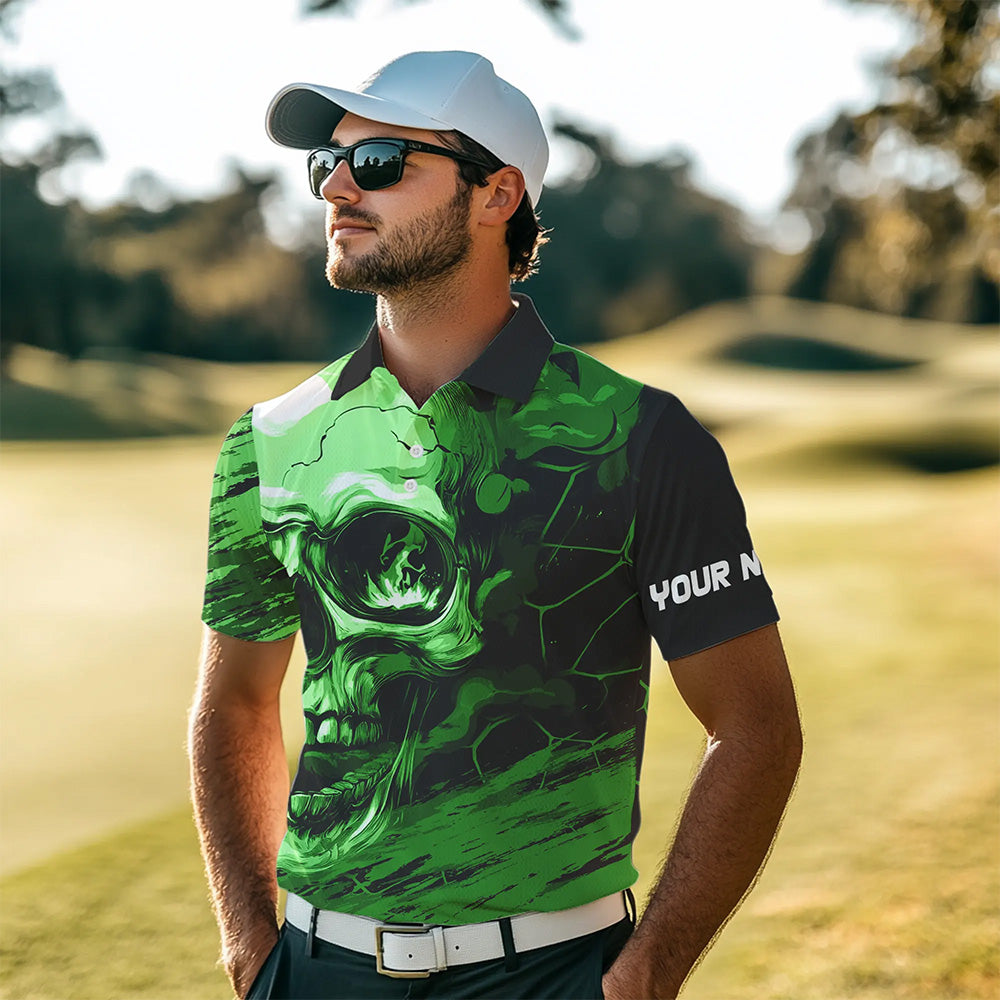 Black and Green Skull Golf Custom Men golf polo shirts, personalized golf tournament jerseys for team NQS9585