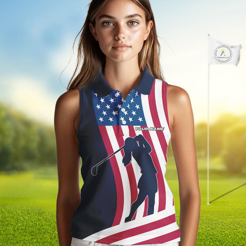 American Flag Sleeveless Polo Shirt custom women's patriotic polo shirts, best golf shirts for ladies NQS10253