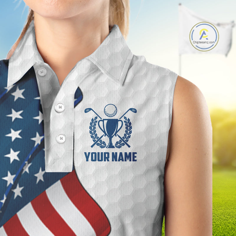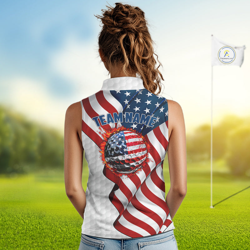 American Flag Women Golf sleeveless Polo Shirt Custom team golf jerseys, patriotic golf shirts NQS9930