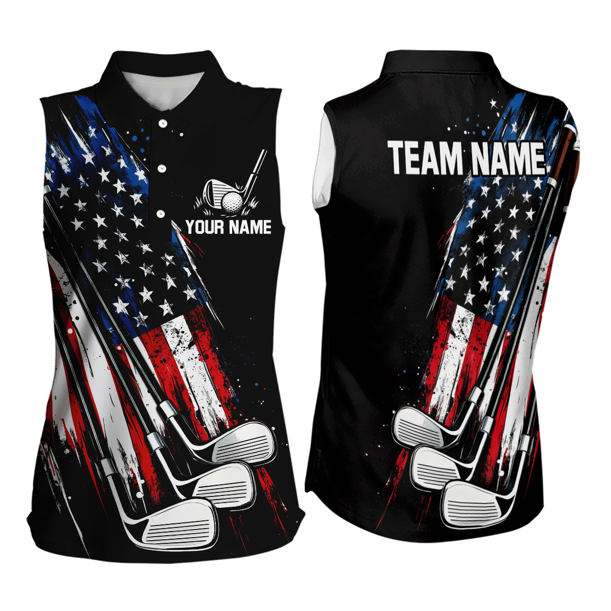 Black American Flag Golf Clubs Women sleeveless polo shirt custom team patriotic ladies golf outfit NQS9871