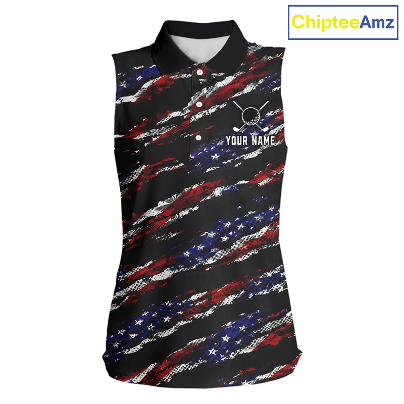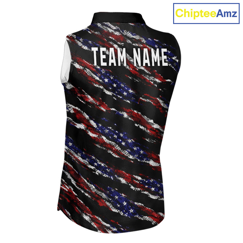 Black American Flag pattern Sleeveless Golf Polo shirts for Women custom ladies patriotic golf shirts NQS11553