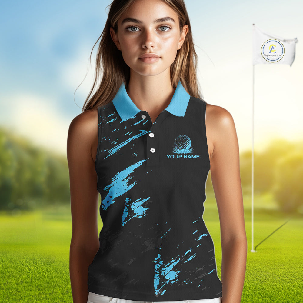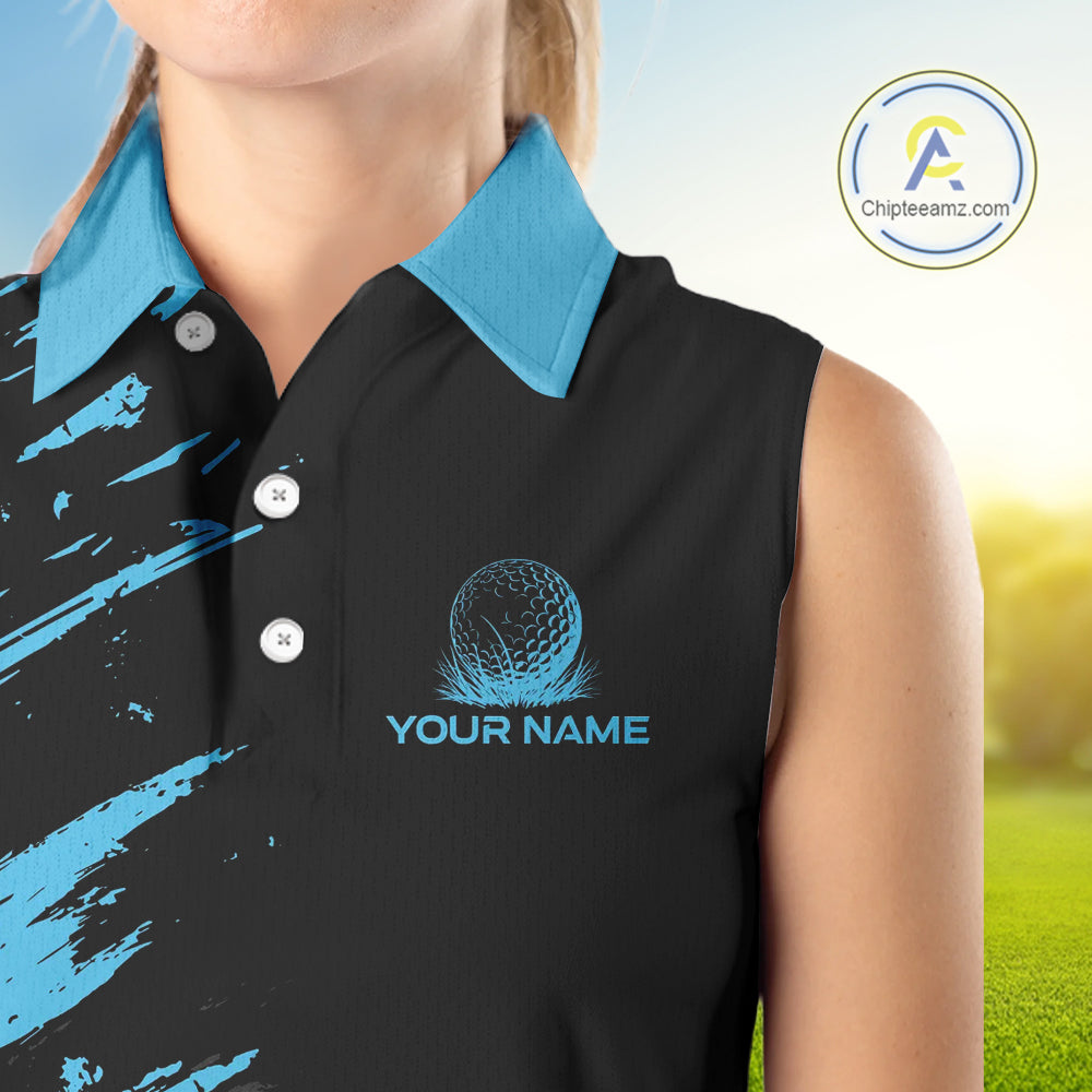 Black and Blue Sleeveless Golf polo shirts Custom name ladies golf outfits, gifts for golf lovers NQS10019