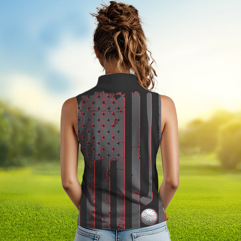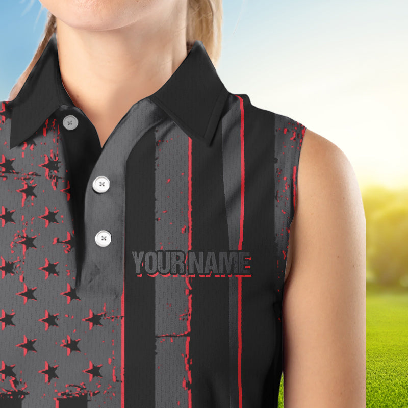 Black and Red American flag Women sleeveless polo shirt Customize patriotic golf shirt for ladies NQS9413