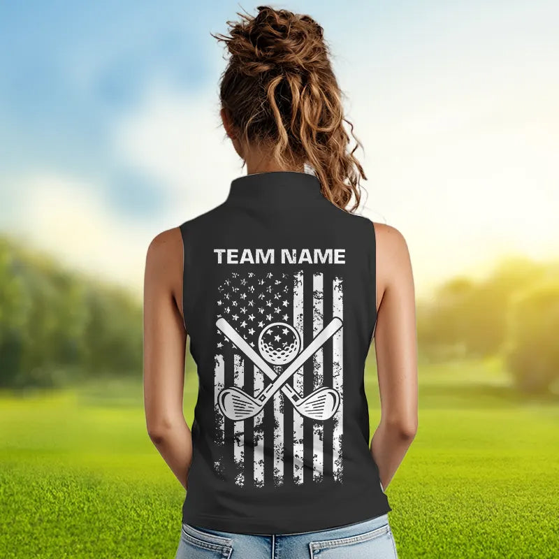 Black and White American Flag Women Sleeveless polo shirt custom patriotic golf apparel team jerseys NQS9605