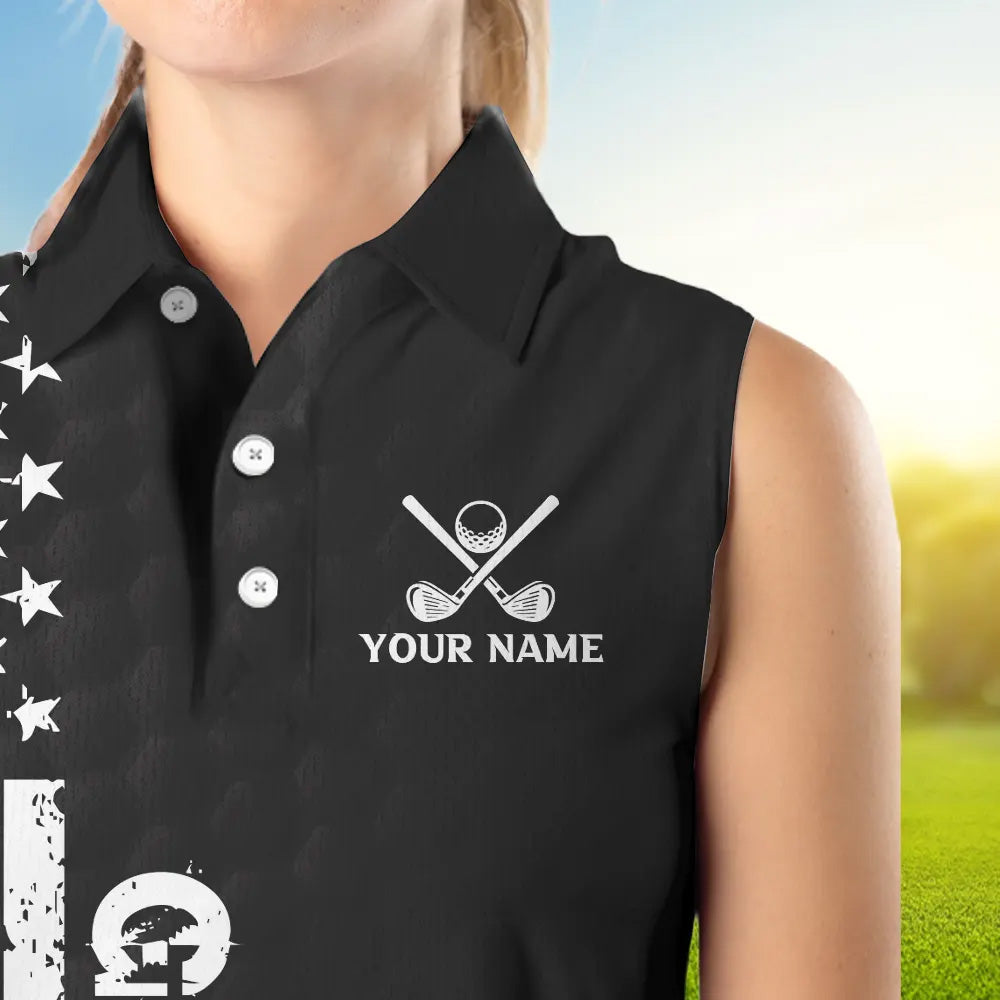 Black and White Retro American Flag Women Sleeveless golf polo shirts custom patriotic golf gifts NQS9663
