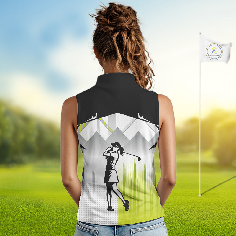 Black and White Women sleeveless polo shirt Custom ladies Golf top, personalized golf gifts | Green NQS10127