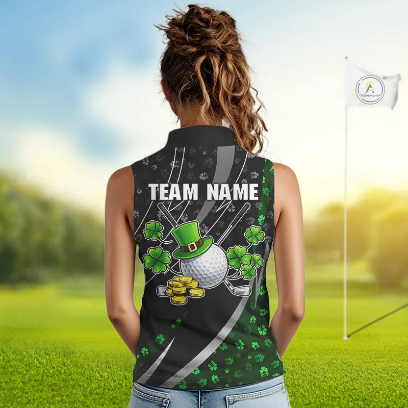 Black & Green Shamrock pattern Sleeveless Golf Polo Shirts Custom St Patrick team women golf clothing NQS11514