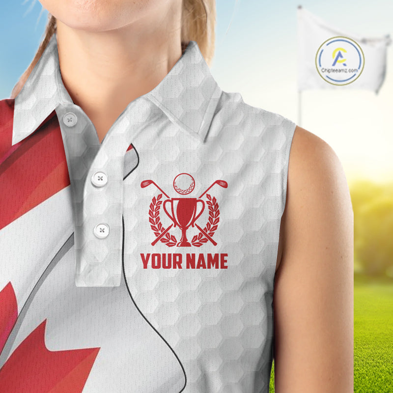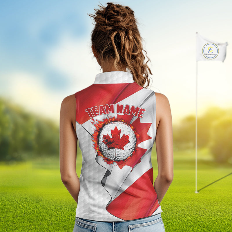 Canadian Flag Women Golf sleeveless Polo Shirt Custom team golf jerseys, patriotic golf shirts NQS9929