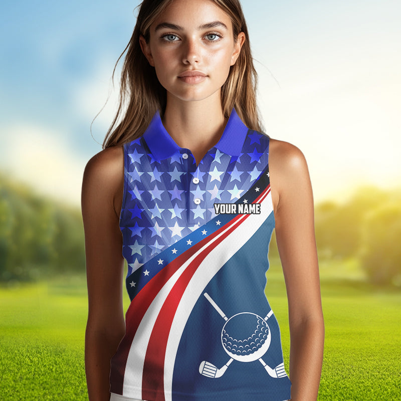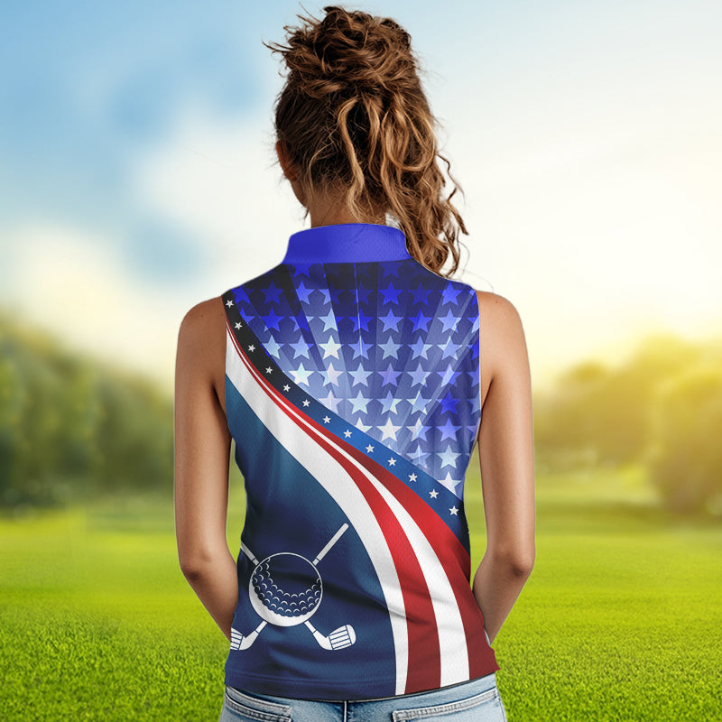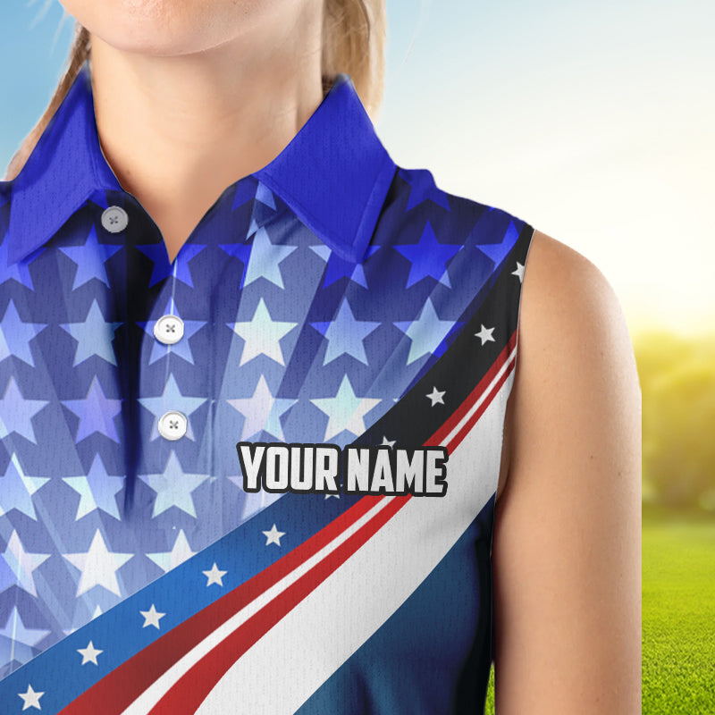 Personalized Red, White and Blue Sleeveless golf polo shirts custom patriotic ladies golf shirts NQS9438