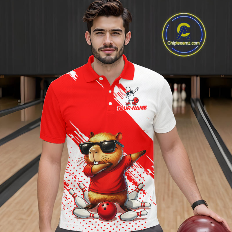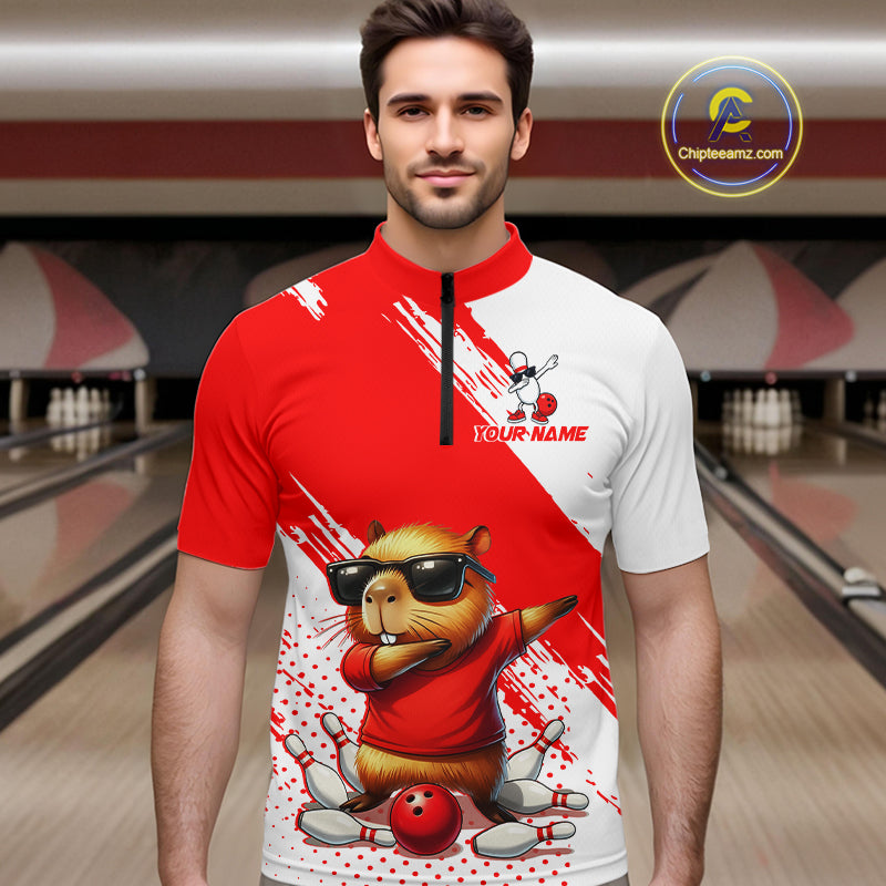 Funny Squirrel Bowling Shirts Team Men Women Bowling Jerseys Red Bowling Polo 1/4 Zip MBL215