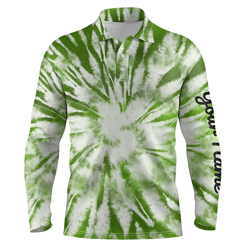 Mens golf polo shirt custom green watercolor tie dye golf shirt mens golf attire, men's golf clothes NQS6026