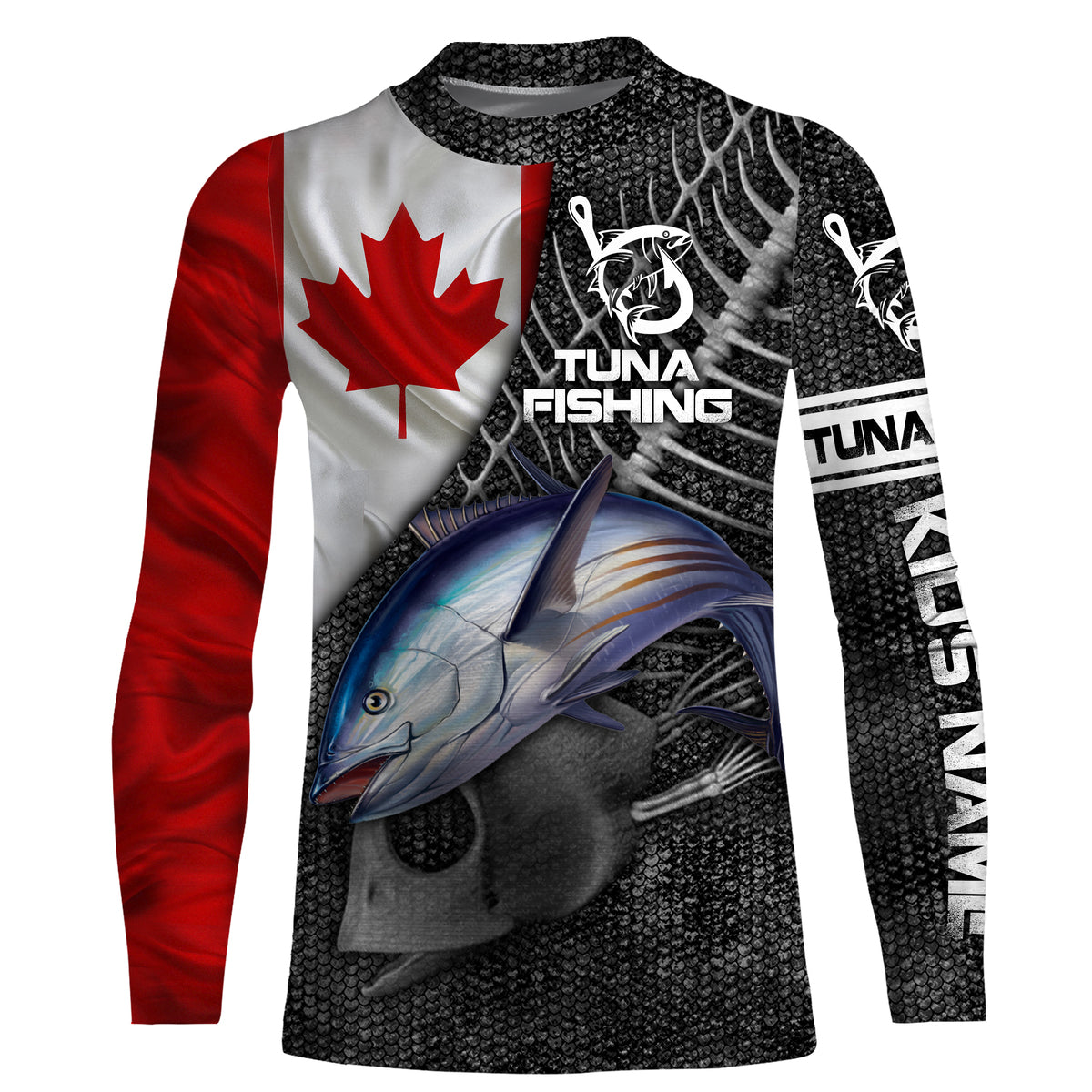 Canadian Flag Bluefin Tuna Fishing Custom long sleeve performance Fishing Shirts, Tuna Fishing jerseys NQS3807