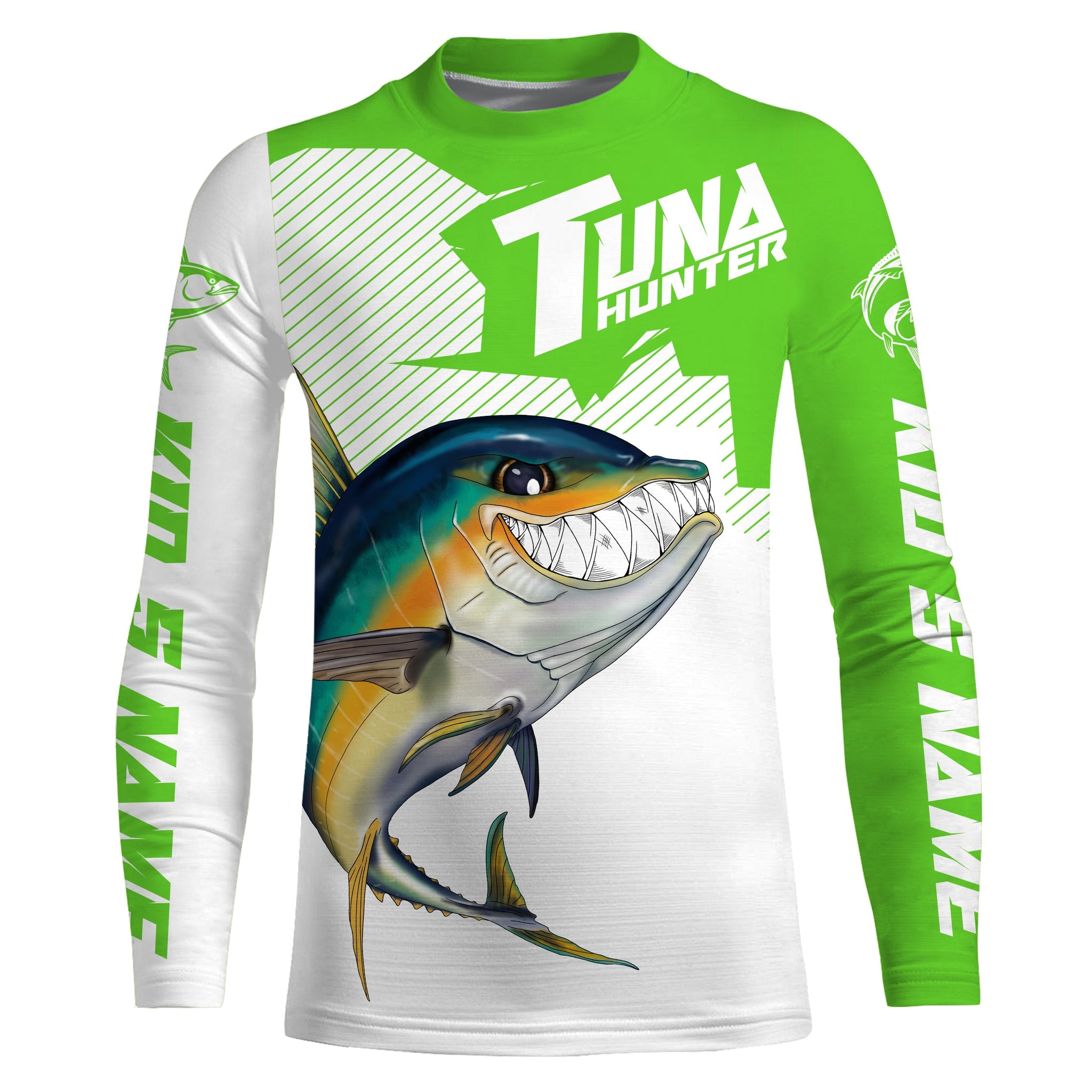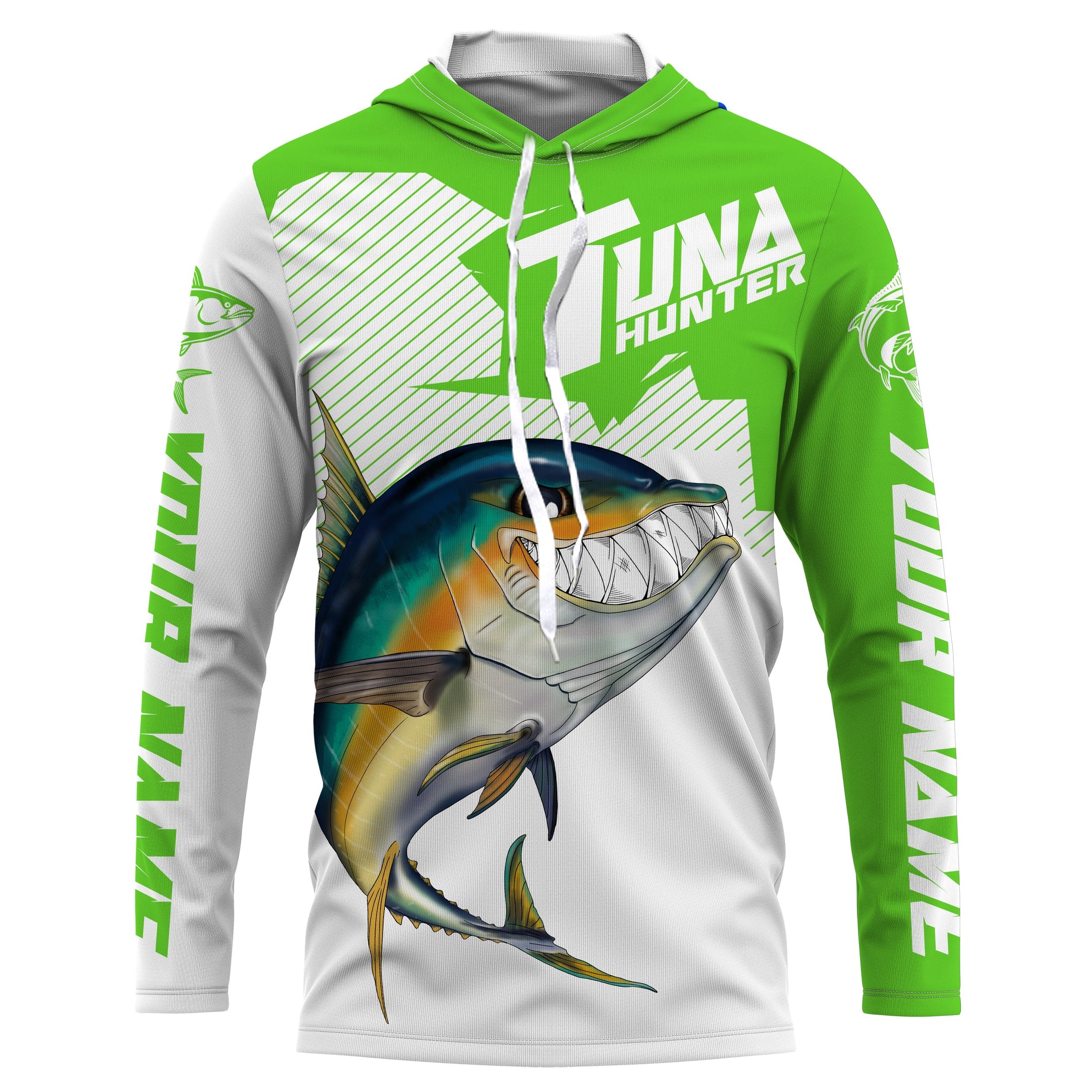 Angry Yellowfin Tuna Custom Long sleeve Fishing Shirts, Tuna hunter Fishing jerseys | green IPHW3384