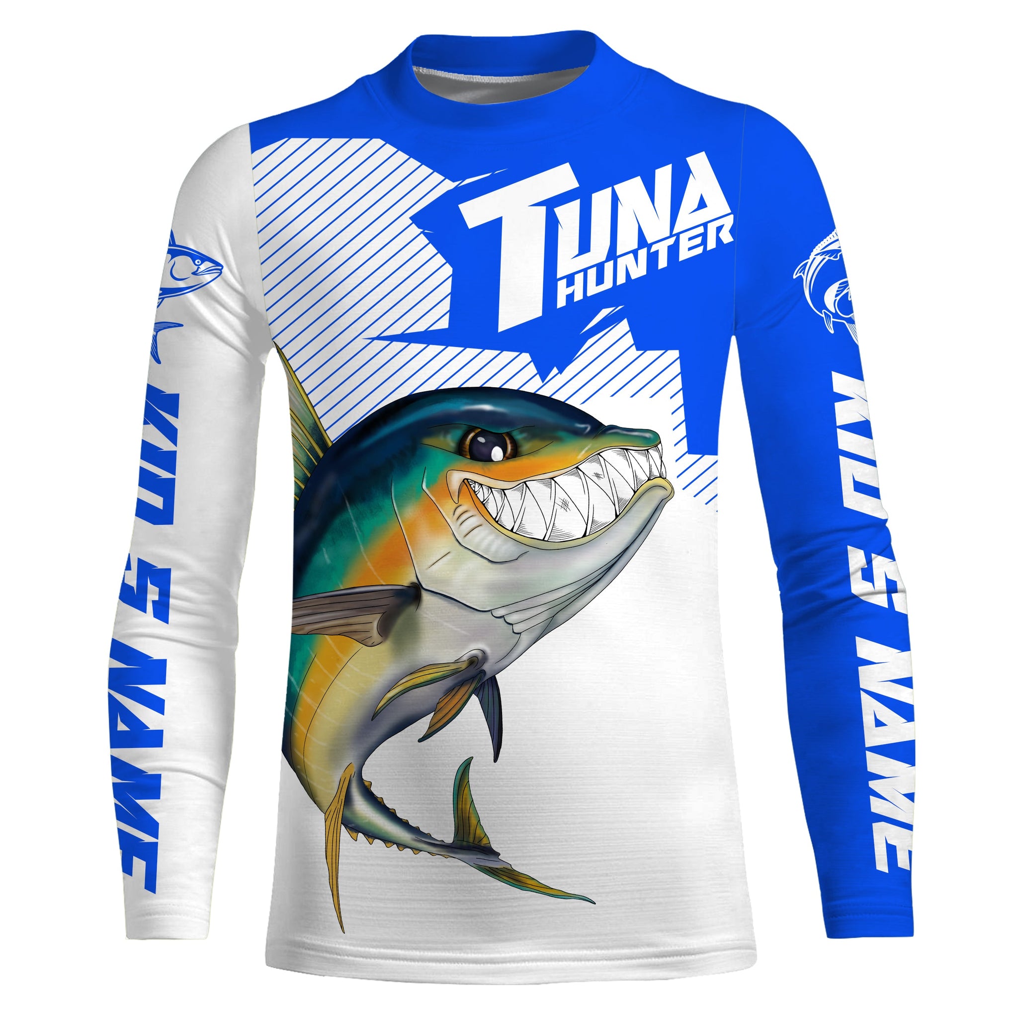 Angry Yellowfin Tuna Custom Long sleeve Fishing Shirts, Tuna hunter Fishing jerseys | blue IPHW3385