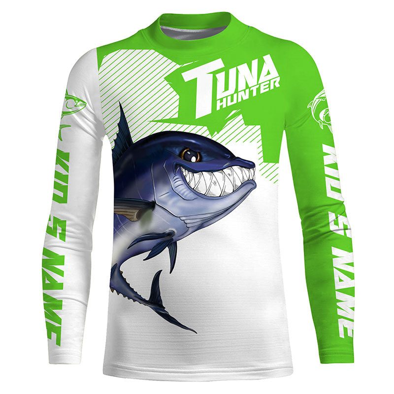 Bluefin Tuna hunter Fishing jerseys, Custom Angry Tuna Long sleeve performance Fishing Shirts |green IPHW3403