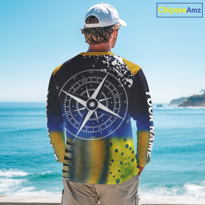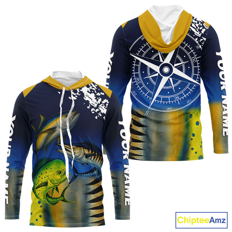 Personalized Mahi Mahi, Wahoo, Tuna scales blue Fishing Shirts, compass offshore tournament Shirts NQS10371