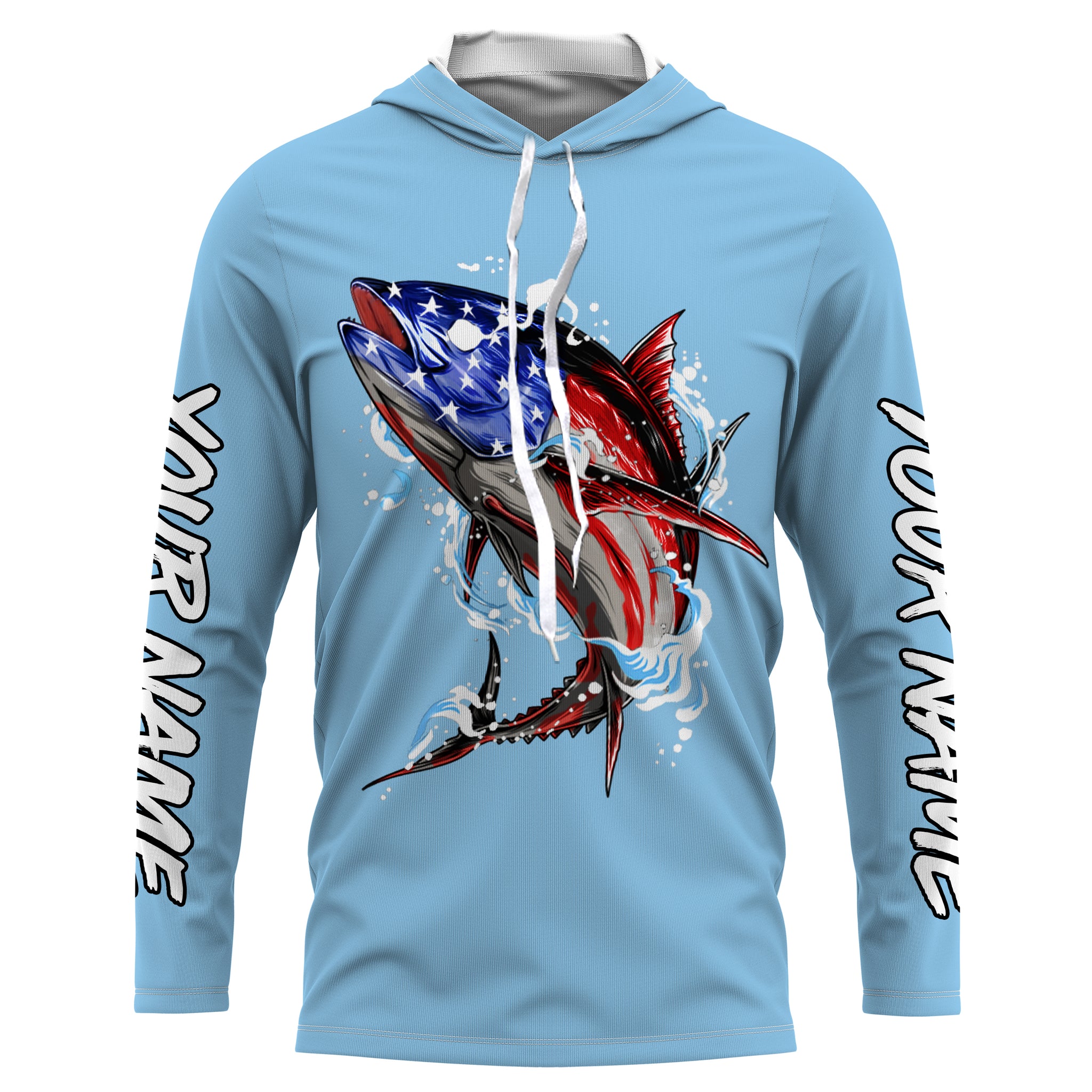 Tuna fishing American flag custom name sun protection long sleeve fishing shirts jerseys | Sky Blue NQS3852