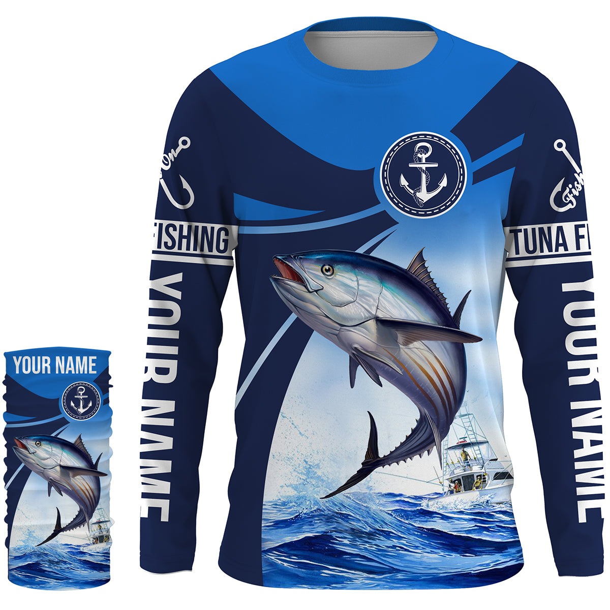 Tuna fishing blue sea underwater ocean Custom Name performance long sleeve fishing shirt uv protection NQS3704