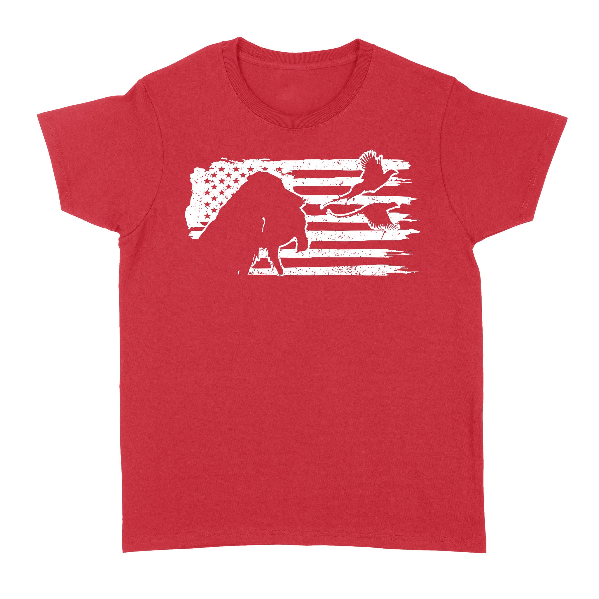 Pheasant hunting with dog American flag patriotic hunting, dog hunting pheasant shirt D01 NQS2582 Standard Women's T-shirt