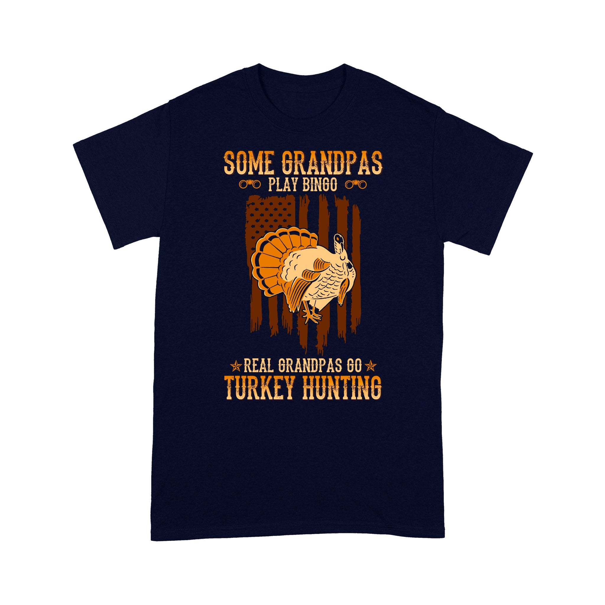 Some grandpas play bingo, real grandpas go turkey hunting American flag 4th July patriot hunting shirt D06 NQS1928 - Standard T-shirt