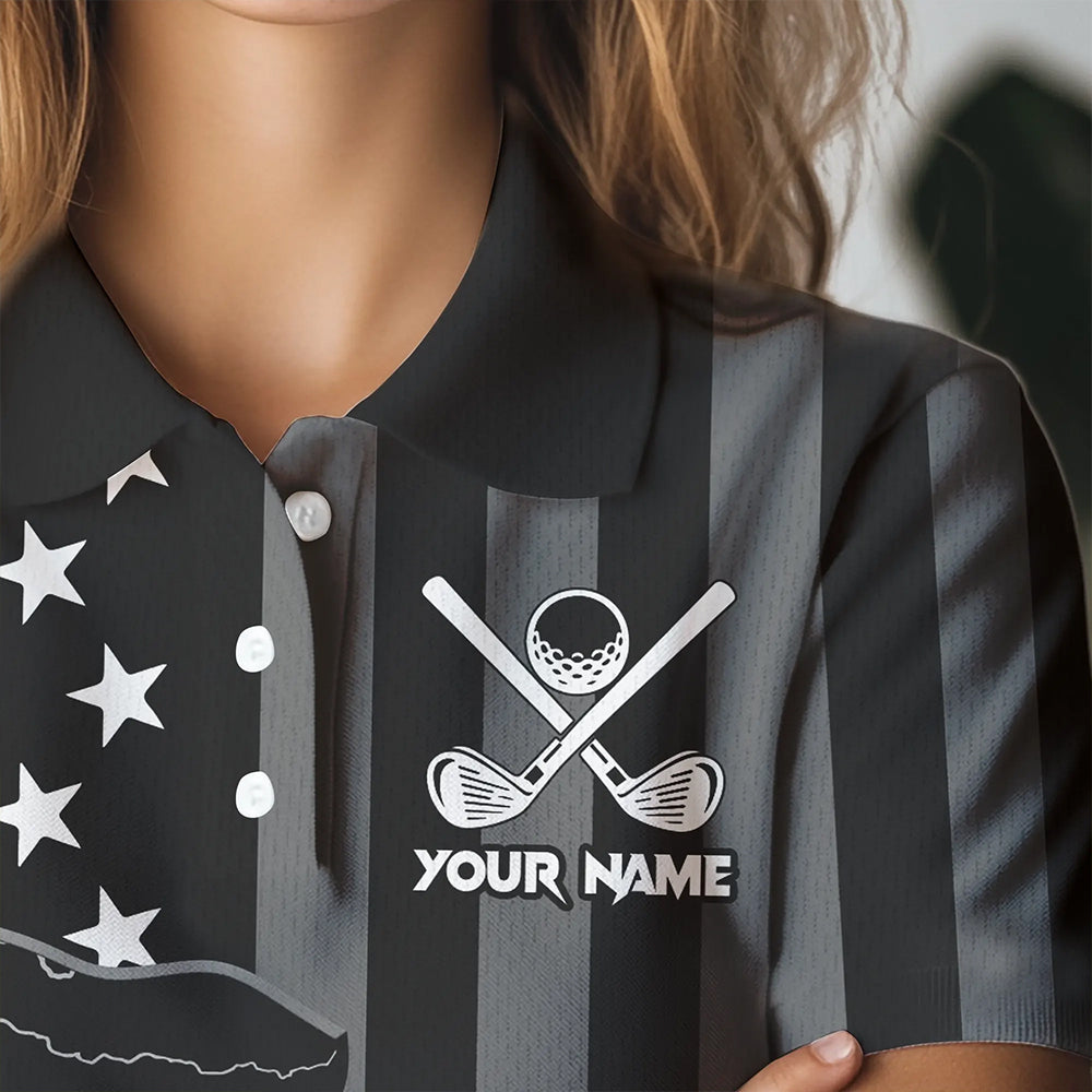 Personalized Black American flag Lightning thunder Custom Golf Polo Team Shirts For Women Golf apparel NQS9540